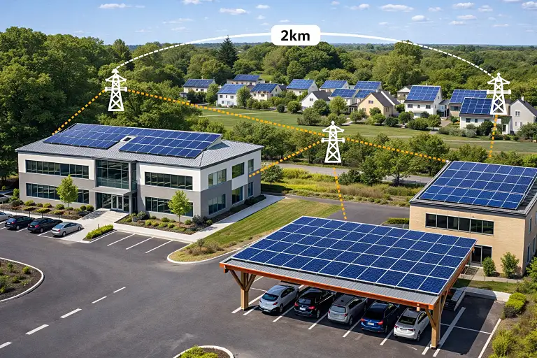 Partagez l’énergie solaire entre plusieurs bâtiments ou avec des voisins (périmètre 2km). Maximisez vos économies grâce à la mutualisation.